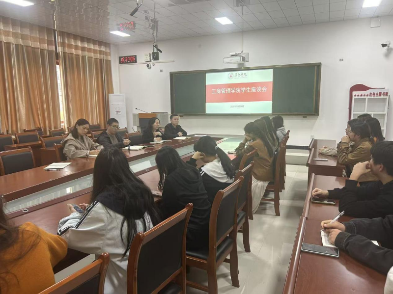 2025年10月28日下午,工商管理学院在留芳楼423会议室组织召开2025-2026学年第一学期学生座谈会,院长童俊、副院长卜建东、党总支副书记吴叔娥、学生代表参加座谈会。