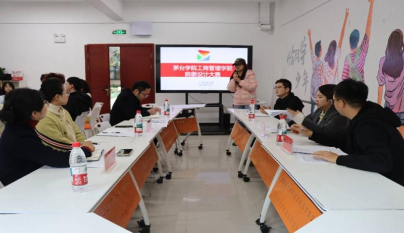 复赛以作品展示+设计者阐述+评委点评的形式开展,参赛选手围绕设计理念、元素寓意、色彩搭配等进行深入讲解。作品紧扣学院定位,巧妙融合工商管理的学科内涵与茅台文化的深厚底蕴,展现创作者的巧思构想。