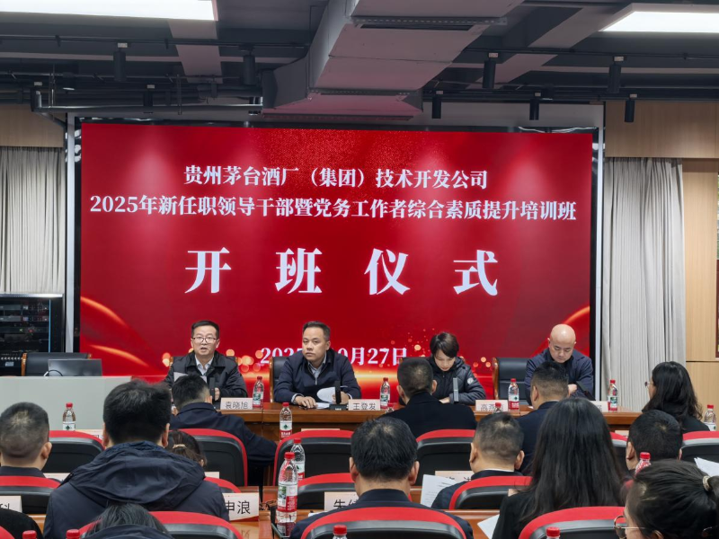 10月27日,贵州茅台酒厂(集团)技术开发公司2025年度党务工作者综合素质提升培训在beat365正版唯一官网必一开班。本次培训主题聚焦党务工作干部人才暨党务工作者赋能和综合素质及能力提升,共50人参加为期4天的培训。