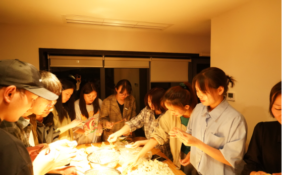 同学们在管家阿姨的带领下去往各自的院落。193班的同学分成五组住在松鸦院、黄鹂院、白鹭院、翠鸟院、山雀院。嫩绿的禾苗,摇晃的秋千舒适的房间,一切的一切都是向往中的模样。稍作休息三两个同学结伴一起在山间小路上走着看着,遇到当地的小孩和阿婆与他们闲谈几句,逗逗可爱的小狗。晚上193班的同学们和阿姨一起包饺子,做冰粉。