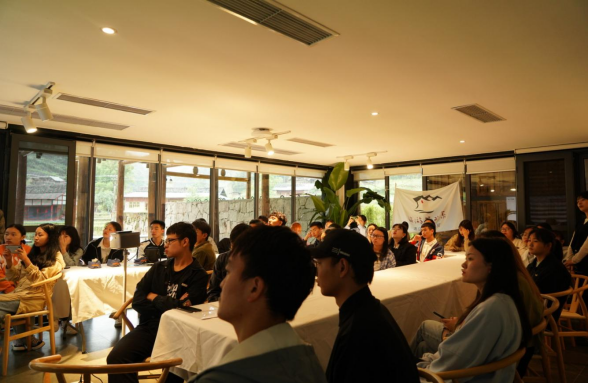 第二天的清晨小雨淅沥,山间涌起了朦胧的雾气吃完早餐后,同学们就一起聆听两位经营者对梧桐山民宿的相关介绍,梧桐山民宿是由中国扶贫基金会、中石油与隐居乡里共同打造。梧桐山民宿秉持着栽下梧桐树引得凤凰来的原则为习水的民众吸引外来资源进入,田坝村也因这些资源生活水平得到了改善。在了解了民宿的情况后同学们也将一些疑问提出: