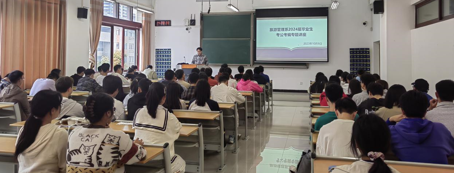 为增强毕业生求职就业意识,规划未来发展方向,提升就业竞争力。10月9日,旅游管理系特别邀请仁怀市有关专家老师来校,举办了考公考编专题讲座。讲座由辅导员胡敏老师主持,我系2024届全体毕业生、部分其他年级学生参加。