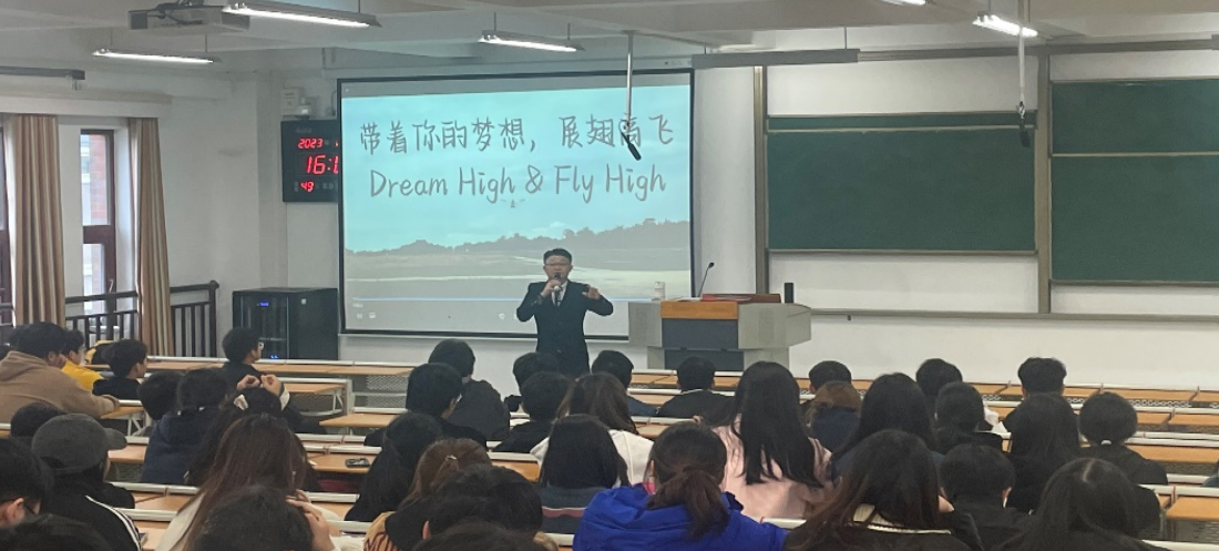 座谈会后,覃通海教授以“学业、事业与创业——多元人生之路”为主题,在学校A1-313教室开展了专题讲座,全校200余名师生参加。