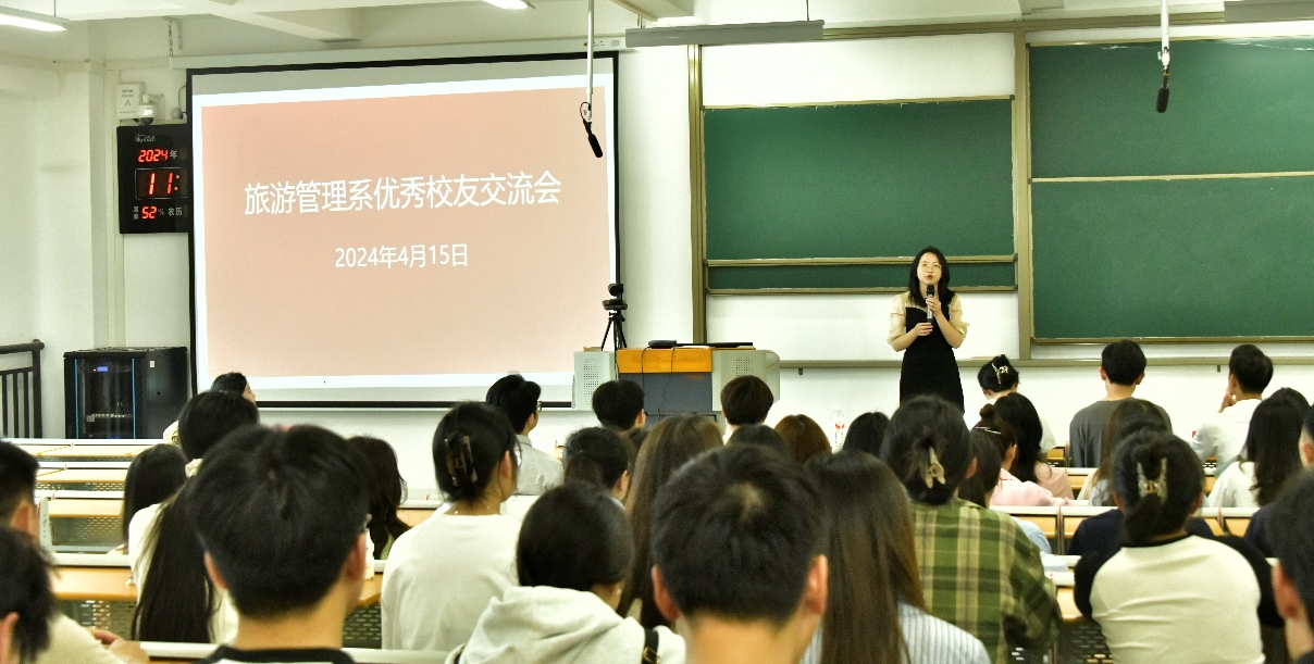 为充分发挥榜样引领作用,帮助2024届毕业生明确职业目标,充分做好职业选择,助力学生就业工作。4月15日,旅游管理系邀请历届优秀毕业生逯腾达、王健波、阮小叶、王绿花来校,在A1-313教室组织开展了就业择业交流会。会议由辅导员胡敏主持,系党支部副书记吴叔娥、辅导员龚婷婷和我系2024届全体在校生参加。
