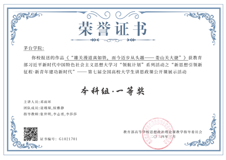 五年来,思政课教师围绕“八个相统一”不断推进思政课教学改革创新,获批省级教改项目、金课建设项目6项,获得校级教学成果奖1项,获批校级教学范式改革项目7项,建设线上课程1门。