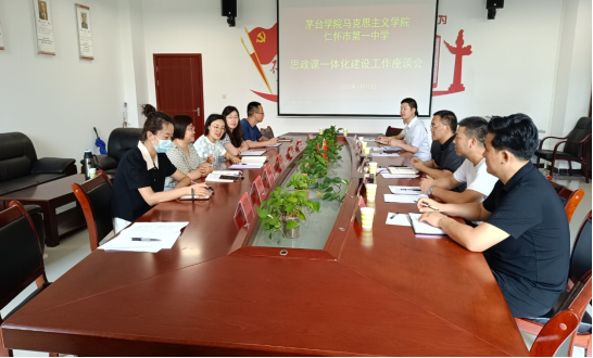 为深入学习贯彻习近平总书记关于教育的重要论述以及习近平总书记在学校思想政治理论课教师座谈会上的重要讲话精神,根据《中共中央办公厅 国务院办公厅关于深化新时代学校思想政治理论课改革创新的若干意见》(中办发〔2019〕47号),《教育部等十部门关于印发<全面推进“大思政课”建设的工作方案>的通知》(教社科〔2022〕3号)等文件精神和要求。7月12日下午,在马克思主义学院党员活动室召开了“马克思主义学院 仁怀市第一中学思政课一体化建设研讨会”。马克思主义学院党支部书记李莎莎同志、仁怀市第一中学副校长王利同志参加会议。