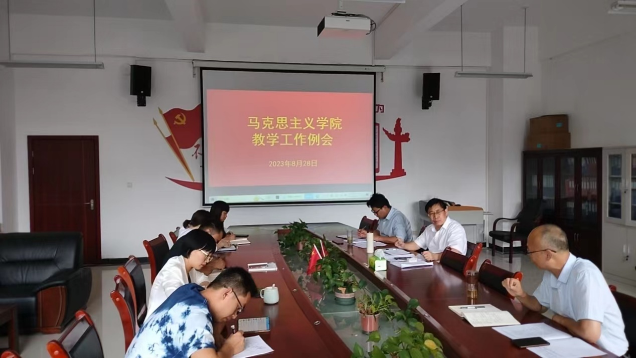 2023年8月28日,马克思主义学院在A1-118召开2023——2024学年第一学期开学第二周教学工作例会,会议由副院长屈建达主持,党政领导、院督导、本学期开课课程组负责人参会。