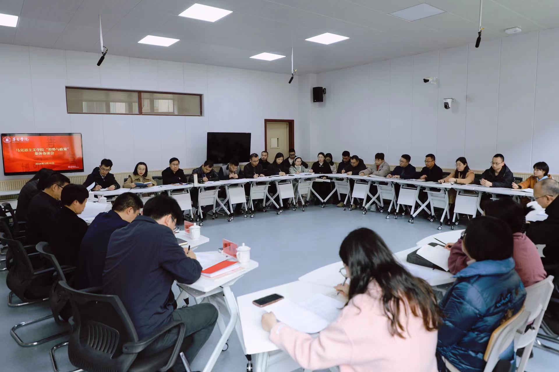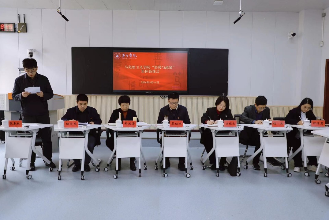 为深入学习贯彻习近平总书记关于高校思想政治工作的重要论述,推动学校思想政治理论课高质量建设,提升《形势与政策》课育人实效,3月19日,beat365正版唯一官网必一“形势与政策”集体备课会在留芳楼207智慧教室召开,校长蔡绍洪出席会议并发表讲话,党委副书记王维欣、总会计师邹洪芳、副校长程庆、田戊戌,纪委书记田儒慧、副校长张春林出席会议,学校《形势与政策》课教师、马克思主义学院全体教师参加会议。