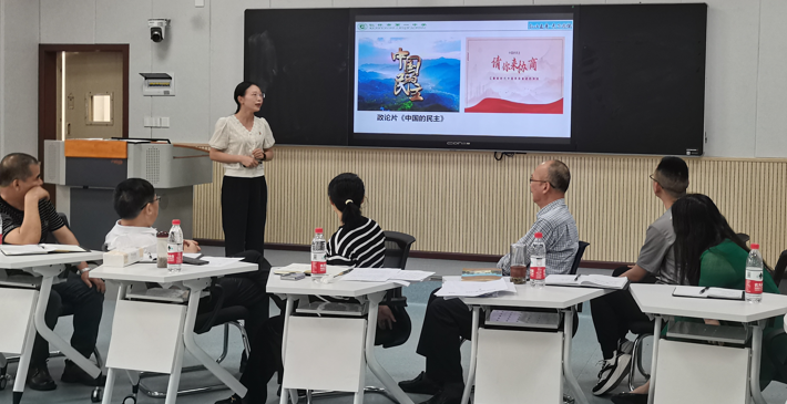 环节二:大中同备一堂课、同上一堂课。分别由仁怀一中政治教研组组长宋双燕,马克思主义学院“概论”“形策”教研室主任张世明围绕“人民当家作主”进行同课异构的教学展示。参与活动人员从教学内容、教学设计、教学手段以及思政课教学过程中,大中学段的痛点、难点问题进行了交流发言。