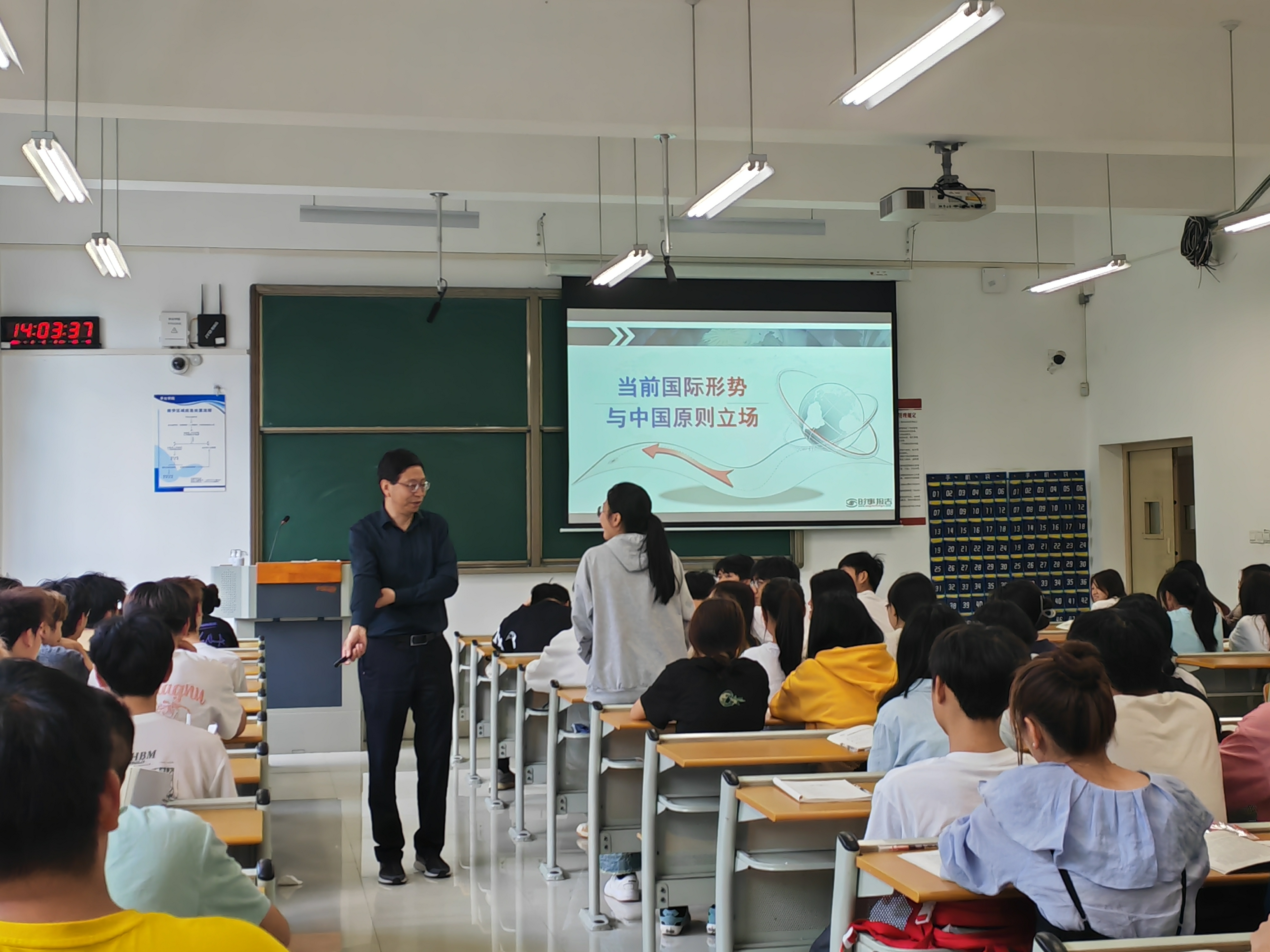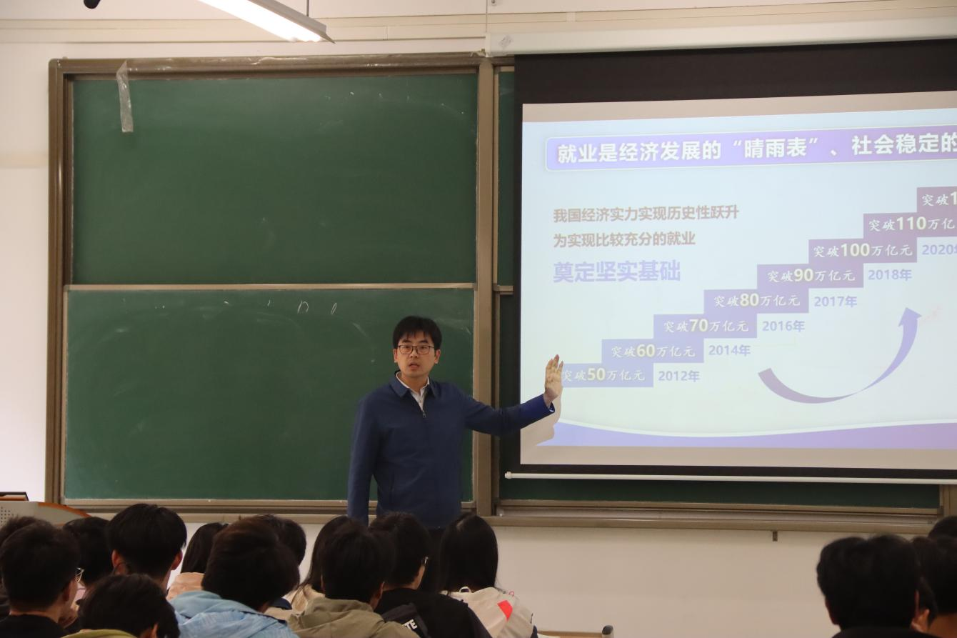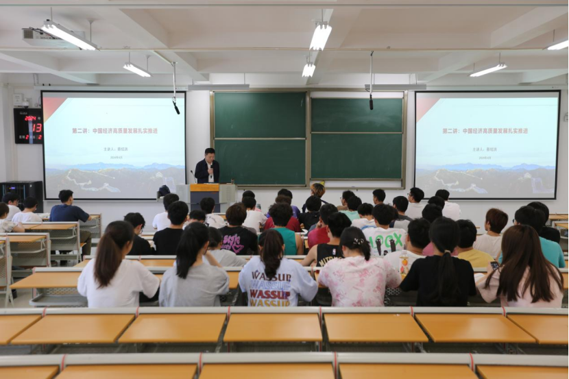 围绕高质量发展与新质生产力、当前就业形势与实施就业优先战略、当前国际形势与中国原则立场等专题,学校领导为2023级学生讲授思政课。