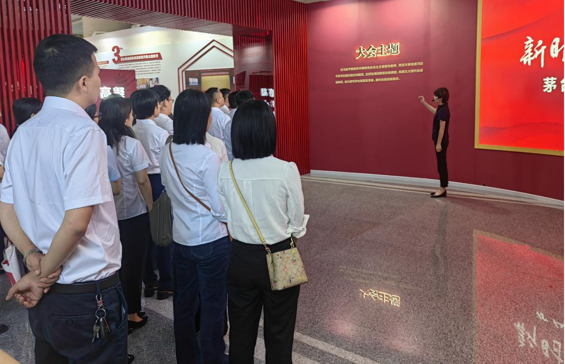 此次结对共建活动分为三部分内容。第一部分是双方支部党员集体参观茅台集团党员代表大会专题展。讲解员从茅台集团的发展、五年来取得的成就、茅台文化软实力、绿色发展、茅台美学、“五线”发展道路等多个方面,带领全体党员同志再次深入学习领悟此次茅台集团党代会精神。要坚定不移走好以茅台美学为价值内涵的五线高质量发展道路、全力以赴构建五大现代化建设体系,“棋”心拼搏、苦干实干,奋力谱写茅台高质量发展、现代化建设新篇章,为开创经济兴、百姓富、生态美的多彩贵州新未来贡献茅台力量。