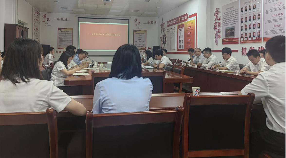 随后双方就业务工作经验开展交流。赵亮同志在交流中说到,微生物活菌检测技术是双方目前科研中面对的共同难题,希望以后能和生产管理部的同志加强沟通交流,携手攻克这一科研难题。姚翠萍同志说道:“我们两个部门构建了产教融合基地,我认为我们的产教融合内容可以不仅限于课堂上理论知识的讲授,还可延伸到检测技术的实践上来。”焦富同志说到,生产管理部重实践,酿酒系提供理论支撑,如何通过支部共建活动创新促进产教融合,共同谋求高质量发展是双方的同一夙愿,希望双方在之后能有科研项目上的合作,也欢迎酿酒系学生能到生产管理部实习实践。王相勇同志说到,今天的参观学习意义重大,最直接地了解到白酒生产管理现目前使用的检测技术,不仅拓宽了教师们的视野,也丰富了教师们以后的教学授课内容,希望两个支部以后能多开展活动,强化党建引领业务作用,促进双方又快又好发展。