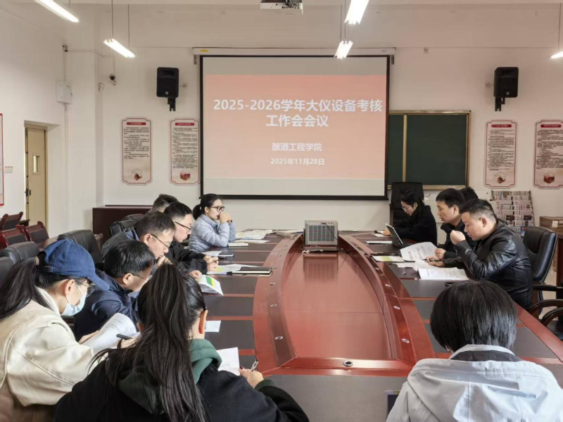 为深入贯彻落实学校“教风学风提升行动”的要求,切实推进立德树人的根本任务,11月28日,酿酒工程学院组织召开了2025-2026学年大型仪器设备考核工作会议。本次会议旨在全面总结当前大型仪器设备管理过程中存在的各类问题,并对下一年度的大型仪器设备管理工作进行系统部署。通过高效、规范的设备管理作为有力抓手,旨在推动实验室整体管理水平的显著提升,从而为教风与学风的建设提供坚实的硬件支撑和完善的制度保障。
