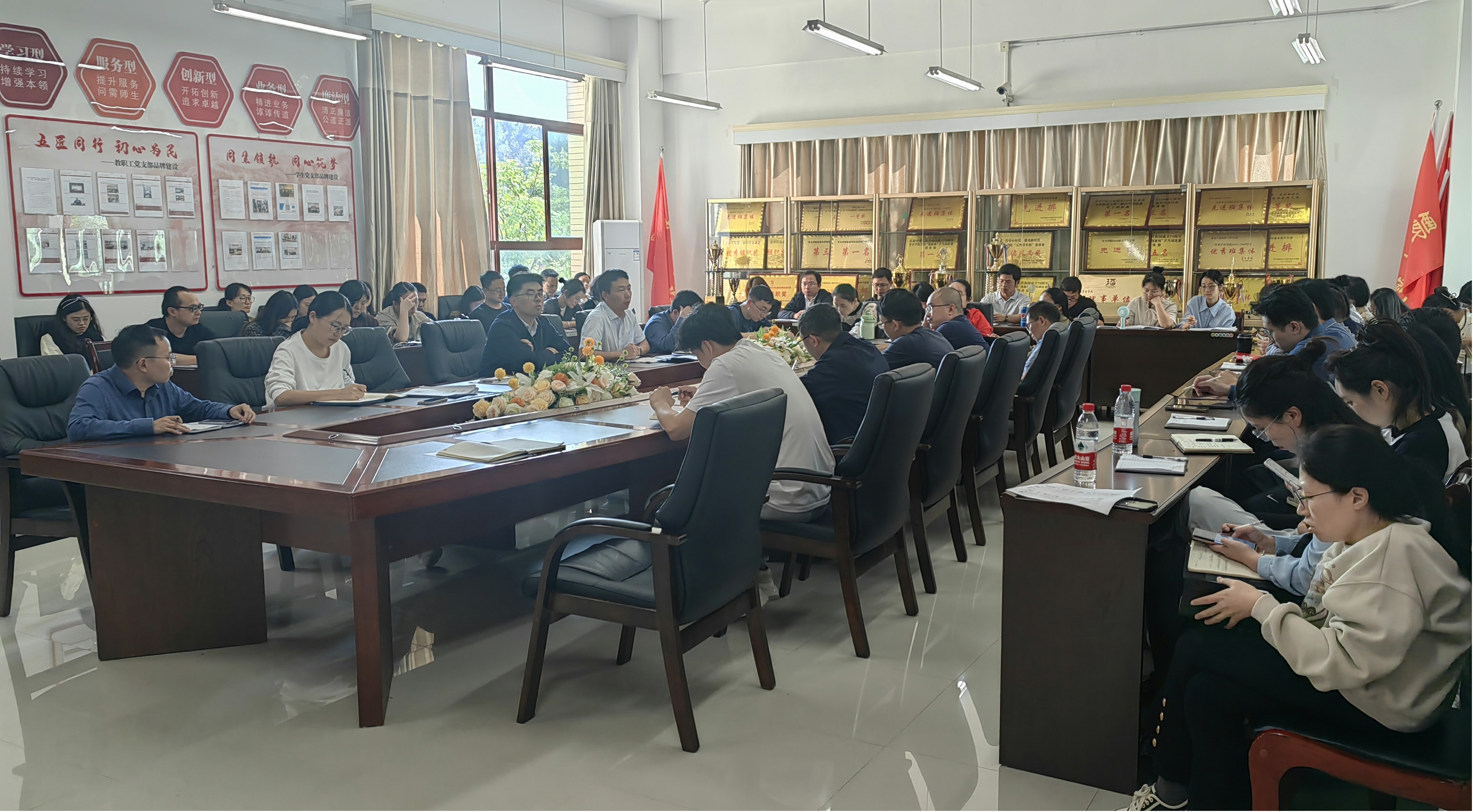 第三项议程为我系党总支书记、主任郭举宣读《酿酒工程系“迎评冲刺阶段”工作实施方案》。我系按照学校迎评工作“冲刺阶段”统一部署,结合我系工作实际,经党政联席会讨论通过后,制定冲刺方案。我系迎评攻坚成立五个工作组,分别为课堂教学及材料准备组,师生访谈及会务组,数据收集、核查及督办组,校内实验室及考察点工作组,校外实践基地考察工作组,由各小组组长为主要责任人,带领各组成员分工合作,齐心协力做好系部迎评准备工作。郭举对我系全体教职工提出三点要求。一要提高政治站位。统一思想,以评估工作为己任,积极配合本系合格评估工作,统筹做好动员部署,认真研究工作难点,协调推进各项工作;二要抓好落实整改。工作组要通过教研室周例会报告指标完善、修改等工作推进情况,及时督促落实整改工作,提升评建相关工作完成质量;三要营造良好氛围。各支部要做好思想引领工作,结合实际,围绕评估开展各类教育实践活动,形成上下一心、奋勇争先的迎评氛围。