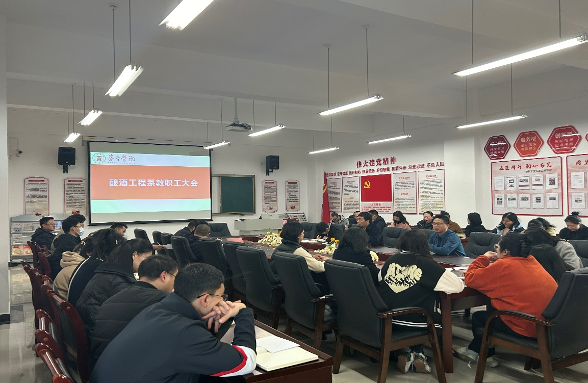 此次教职工大会的召开,不仅传达了上级会议精神,还为酿酒工程系的进一步发展提供了有力的支持和指导。各教职工纷纷表示将认真贯彻落实会议精神,积极开展教学和科研工作,为学院和系里的发展贡献自己的力量。