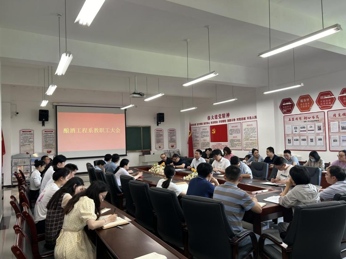 为全面加强系部建设与管理,进一步推动系部工作高质量发展,酿酒工程系于2024年5月23日上午10:00召开全系教职工大会。会议由我系党总支书记、系主任郭举同志主持,学院党委委员、副校长张春林同志莅临指导,我系全体教职工参会。