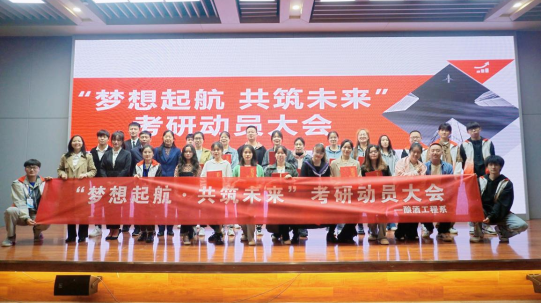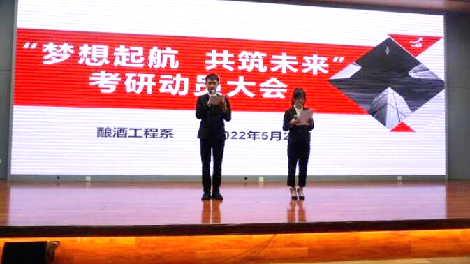 厉兵秣马,未雨绸缪。为提高2019级学生考研热情,调动学生考研积极性,帮助学生认清考研新形势,树立考研信心,营造良好的考研氛围。5月20日中午,酿酒工程系在图书馆报告厅召开“梦想起航·共筑未来”考研动员大会。参与此次活动的老师有酿酒工程系党总支书记何惠,郭举教授,吴叔娥老师,刘晓晓老师。