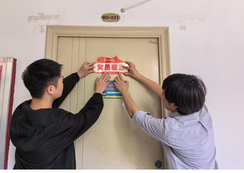 活动伊始,刘晓晓老师宣读学生党员寝室名单,教师党员罗粒老师、邓红老师为党员寝室授予象征责任与使命的“特殊门牌”,并共同挂牌,勉励每一位党员要亮身份、争先锋,深入同学服务同学,以良好精神风貌,充分发挥党员的桥梁纽带和模范带头作用。