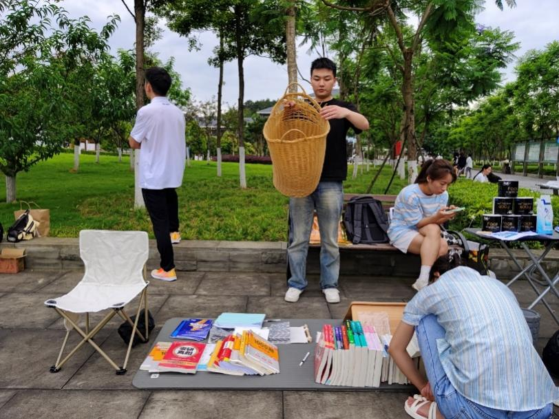 此次活动主要为即将毕业离校的学子提供旧物售卖平台,减轻毕业学子离校运输压力的同时,让在校学生购买到实惠好用的生活学习用品。本次跳蚤市场售卖物品种类繁多、物美价廉,有考研书籍、笔记本,毛绒玩偶、装饰品,各种书籍等实用用品,也有创新创业学生售卖的扭扭棒风车、手链等精美手工制品。
