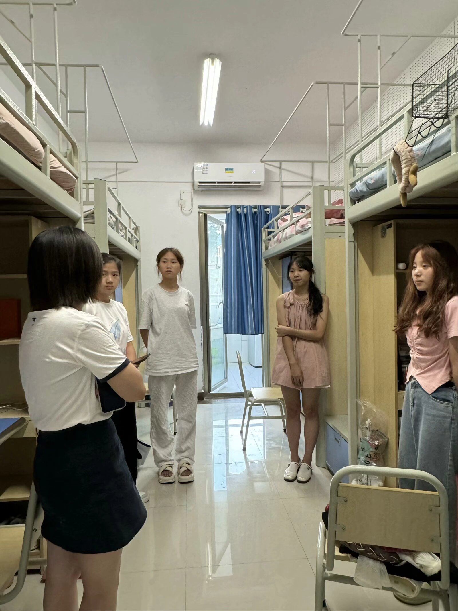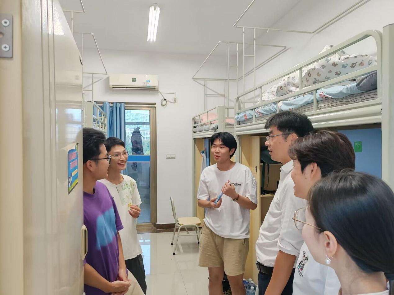 走访过程中,张春林副校长关切询问新生生活情况、学习安排以及对学校的初步感受,系部针对学生提出的问题进行了详细记录,承诺将持续改进和优化相关服务。各新生班主任逐一走访了本班学生宿舍,仔细检查了宿舍的卫生状况、安全设施,并与新生开展面对面交流,解答新生疑问,确保新生能够在一个安全、舒适的环境中开始他们的大学生活。