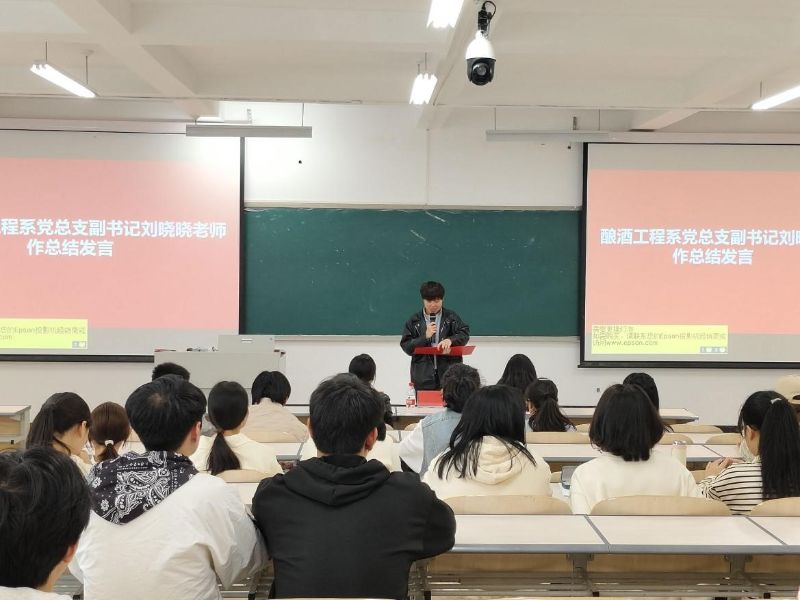 大会最后,由酿酒工程系党总支副书记刘晓晓老师致辞。她对工作站过去一年的工作给予了高度评价,感谢第二届易班成员的慷慨付出和无私贡献,期望新成员们能够明确身上的责任和义务,继承和发扬上一届易班成员的优良传统,在接下来的日子里,继续以同样的热情和奉献精神,为同学们提供更多更好的服务,为酿酒工程系朝更好的方向发展贡献自己的智慧和力量。