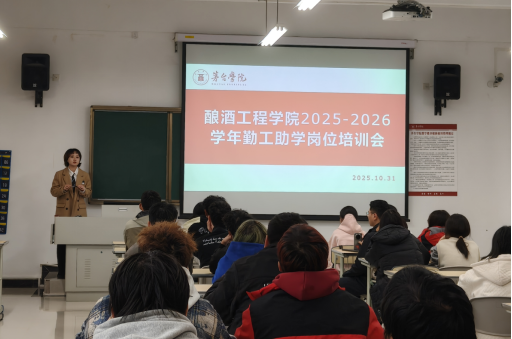 为强化勤工助学学生责任担当,促其在教学管理实践中锤炼成长。2025年10月31日,酿酒工程学院于报国楼A2-205开展2025-2026学年勤工助学岗位培训会。学院党总支书记、副院长刘京老师,党总支副书记吴鹏西老师,教学秘书梁凡老师以及全体勤工助学成员参会。会议由学院学生工作室主办赵新城老师主持。