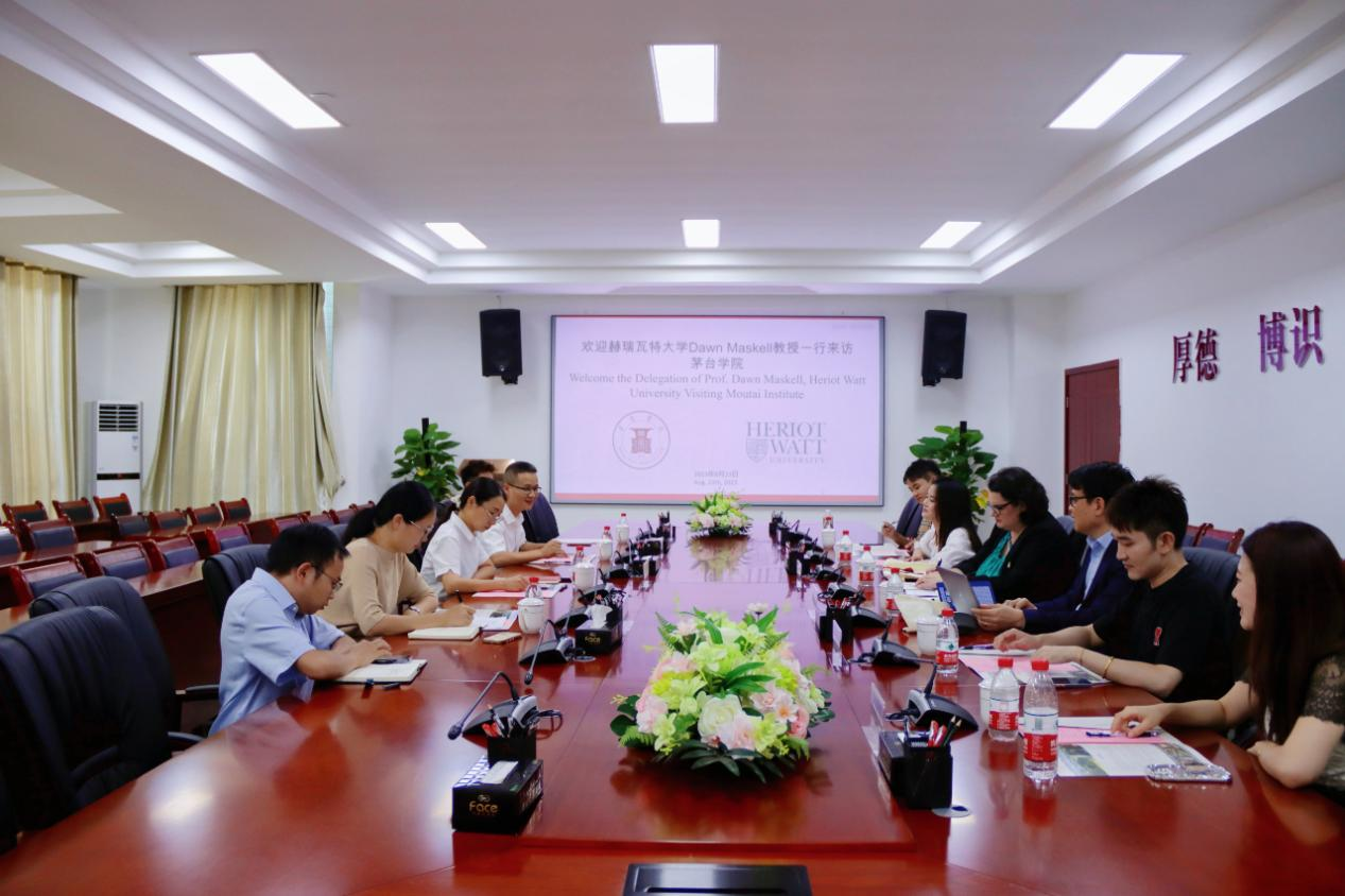 8月23日下午,英国赫瑞瓦特大学与北京新东方前途出国咨询有限公司贵州分公司一行走访beat365正版唯一官网必一,于行政楼二楼会议室召开交流研讨座谈会。双方就本单位蒸馏与酿造方面基本建设情况展开交流,围绕教学创新、课程设置、实习实践、科学研究以及师资队伍建设等方面开展深入交流,探索总结教学好经验、好做法、好模式,并进一步探讨了蒸馏与酿造方面的课程及学生出国留学相关事宜。