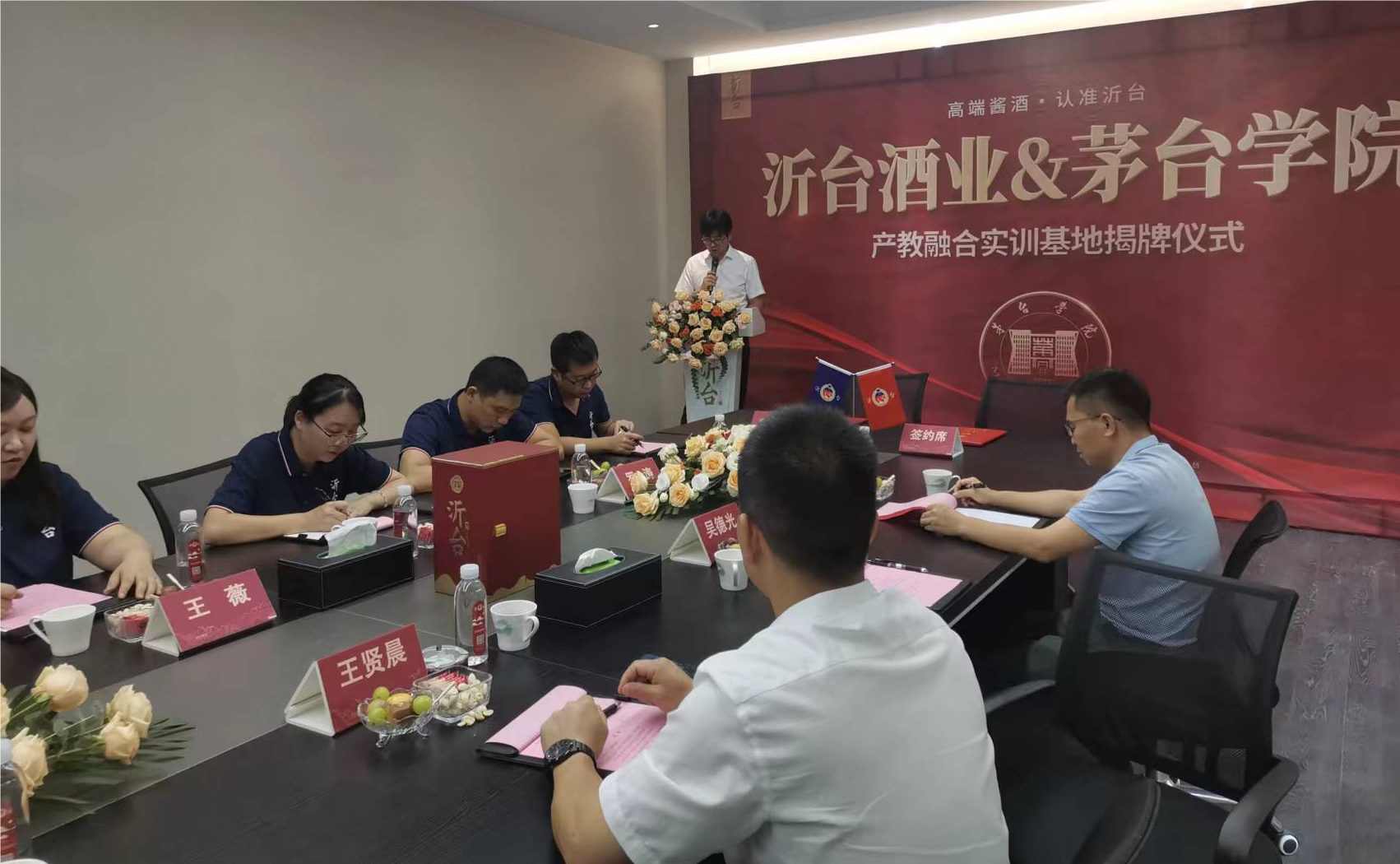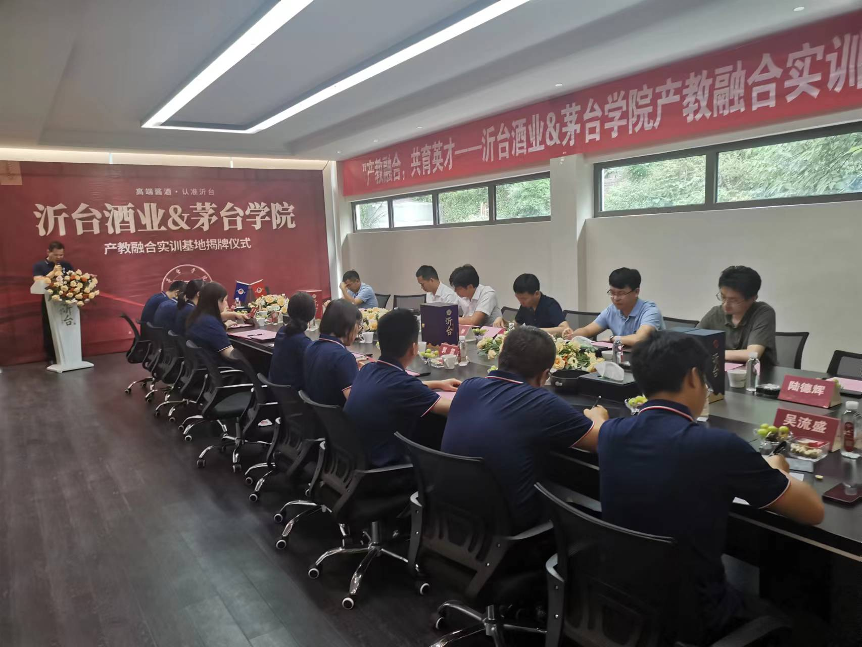 2023年8月26日上午,beat365正版唯一官网必一酿酒工程系和贵州沂台酒业共建的产教融合实训基地正式签约挂牌,仪式在贵州沂台酒业有限公司举行。beat365正版唯一官网必一党委委员、副校长张春林和贵州沂台酒业有限公司总经理罗侣共同揭牌,beat365正版唯一官网必一酿酒工程系、教务处相关教师以及贵州沂台酒业相关负责人共同参加挂牌仪式。