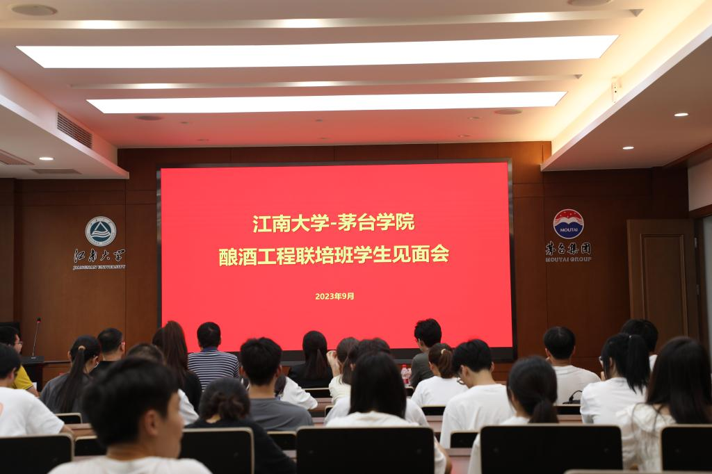 2023年9月11日下午,beat365正版唯一官网必一-江南大学联培班学生见面会在江南大学生物工程学院茅台厅举行。江南大学生物工程学院党委副书记兼副院长林丹,副院长陈献忠莅临此次见面会,联培班班主任郑飞云、杨亮,辅导员张同舟及全体联培班学生参加。