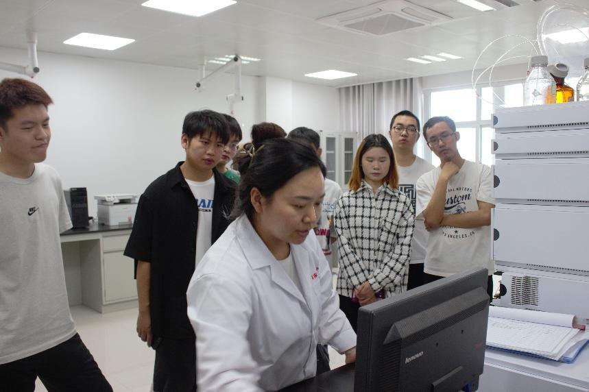 在酒检院实验室,酒检院工作人员将实验室参观分为“理化”“气相”“液相”三部分,同学们根据自身兴趣前往对应的实验室听讲,了解了从样品接收到数据分析、从结果判定到报告出具的整个酒类产品检验检测流程。