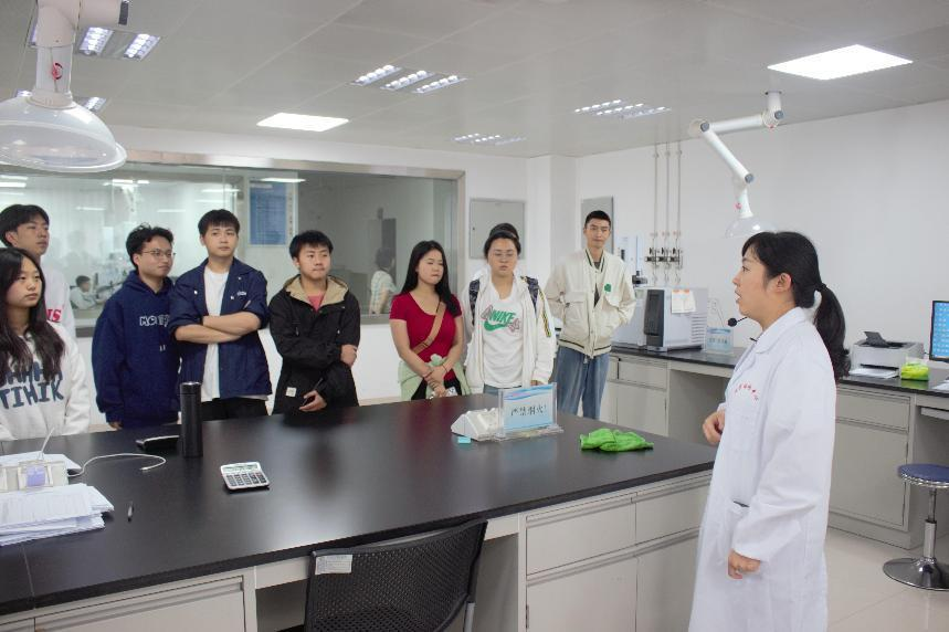 活动伊始,酒检院工作人员向我系师生介绍贵州省酒检院的基本情况、如何为酒类产业提供检验检测和技术服务以及其在保障酒类产品质量安全方面所做出的贡献。随后,工作人员带领学生参观四层实验室。