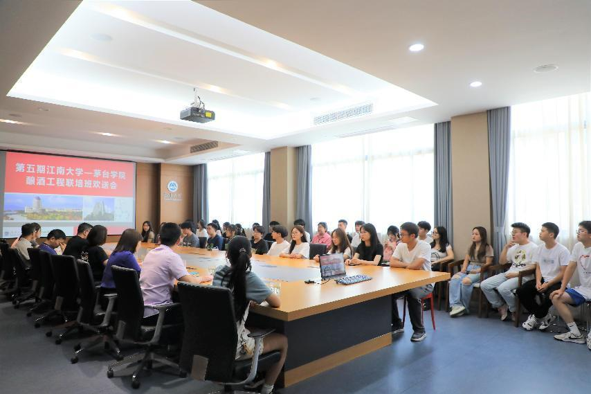 6月17日下午,在第五期江南大学—beat365正版唯一官网必一酿酒工程联培班(以下简称“茅台班”)学生即将结束交换学习之际,生物工程学院为“茅台班”学生举行欢送会,生物工程学院党委书记程捷音、院长刘龙、党委副书记兼副院长林丹、副院长陈献忠、班主任郑飞云及全体学生参加座谈,欢送会由辅导员张同舟主持。