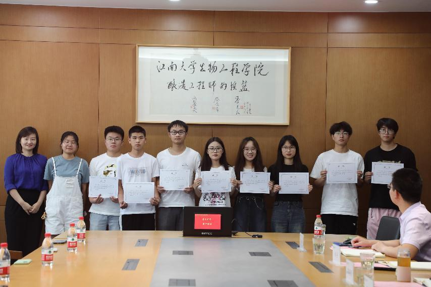欢送会上,林丹、陈献忠副院长为同学们颁发学习证明,程捷音书记为同学们赠送了刻有江南大学生物工程学院logo、院训和学生姓名的印章,希望同学们能铭记在江南的美好时光,在将来的学习工作中取得更大的进步。