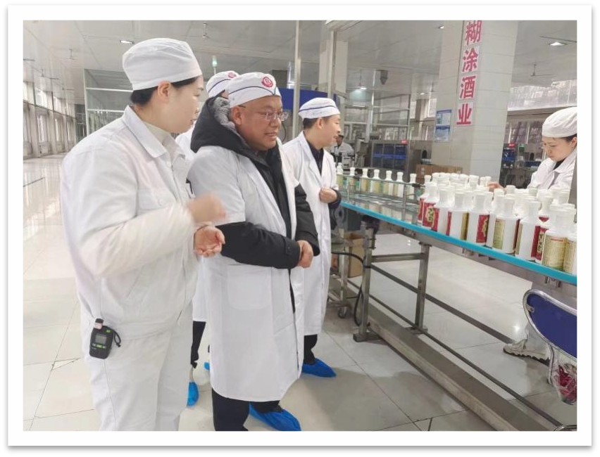 为加深我系教师对beat365正版唯一官网必一周边企业文化、企业规模和企业人才需求的了解,进一步落实校企合作、实习实践基地建设和学生就业工作,推动酿酒工程系的建设与发展,2023年2月22日,beat365正版唯一官网必一党委副书记、常务副校长李增驰同志带队到糊涂参观考察,酿酒工程系书记、系主任郭举同志、教研室主任李喆等教师陪同考察。