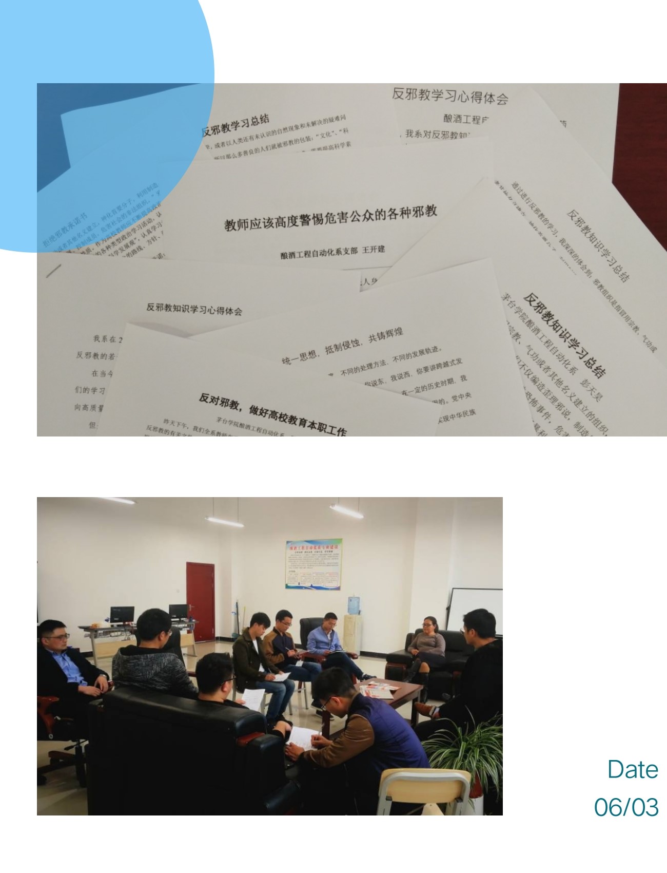 自动化系组织教师开展对反邪教知识的学习情况