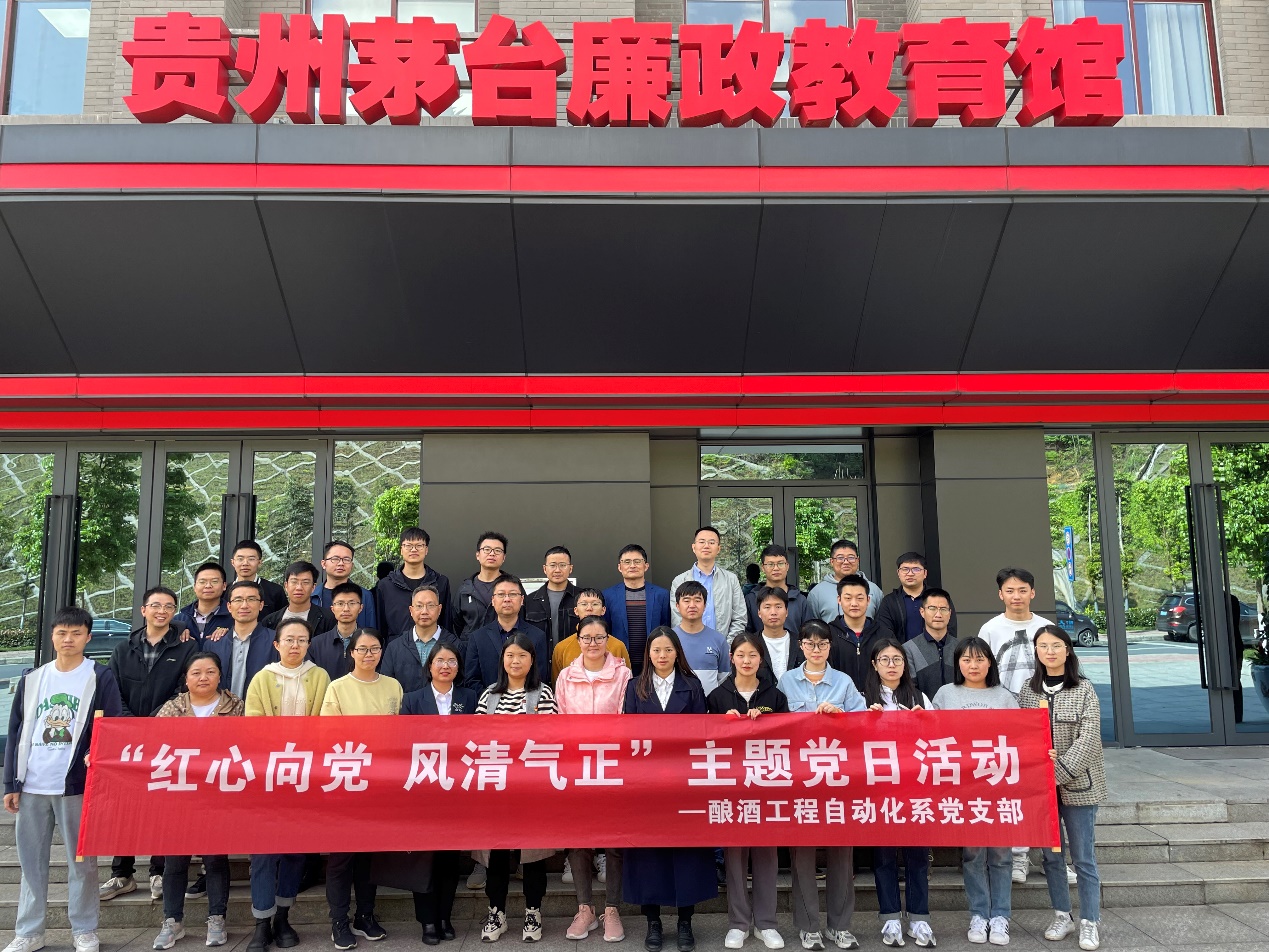为贯彻落实集团公司创建“茅台五心”党建品牌,红心向党,始终坚持党对企业的领导不动摇,发挥党组织在企业的领导核心和政治核心作用,保证党的方针政策、重大部署的贯彻执行,持续强化理论武装。酿酒工程自动化系党支部全体教职工、学生党员于2023年4月25日下午,前往贵州茅台廉政教育馆,在学校纪委副书记田儒慧同志应邀参加指导开展警示教育。