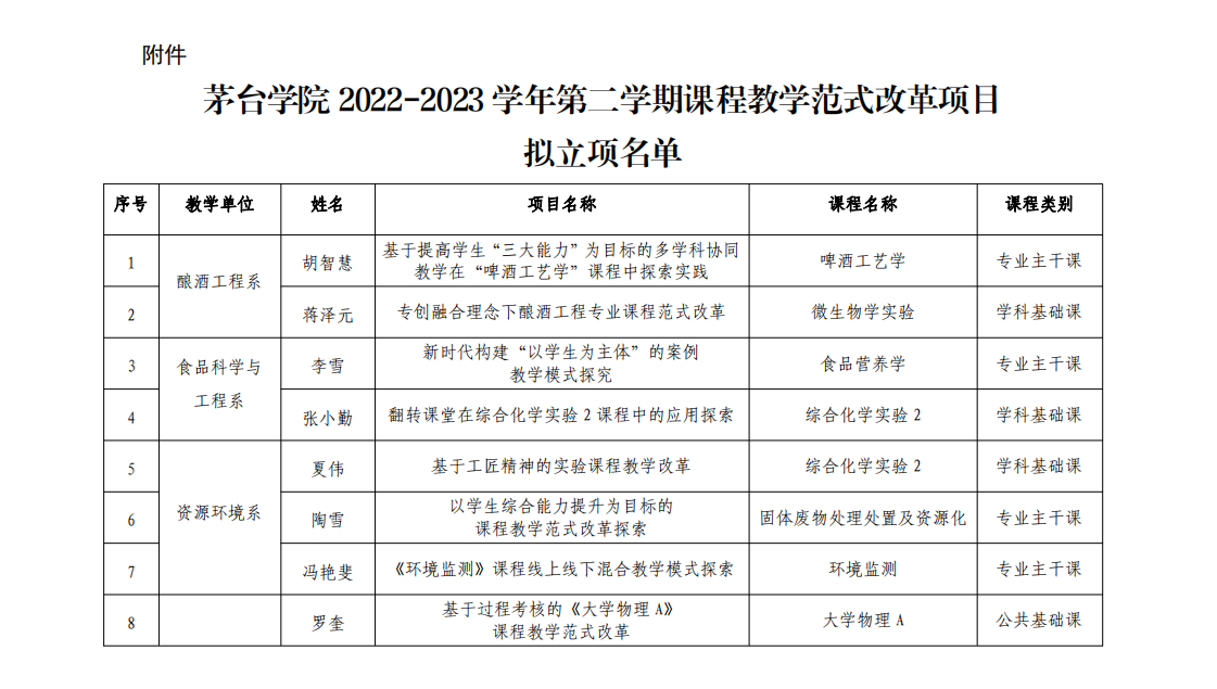 关于beat365正版唯一官网必一2022-2023学年第二学期课程教学范式改革项目拟立项名单的公示