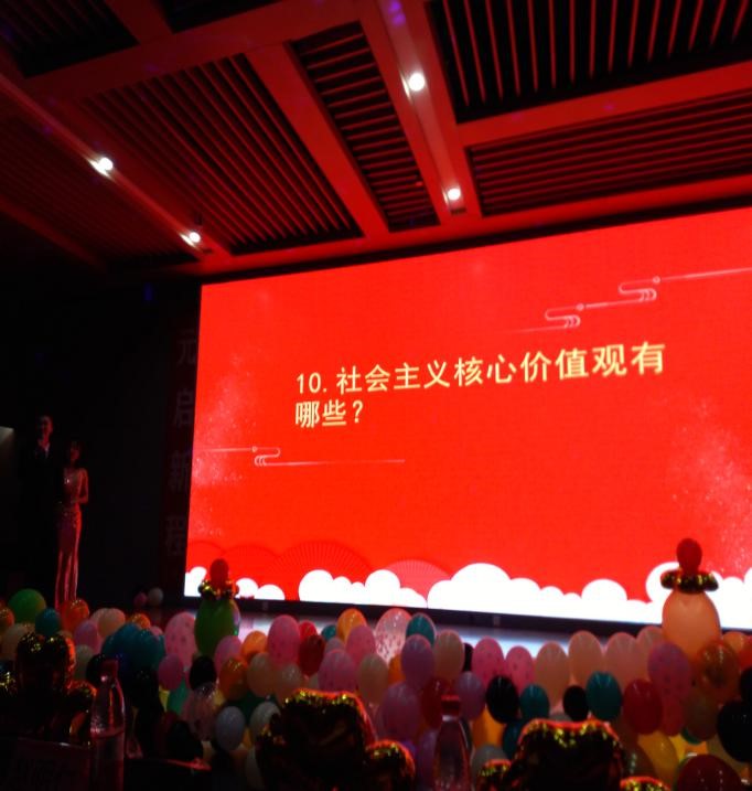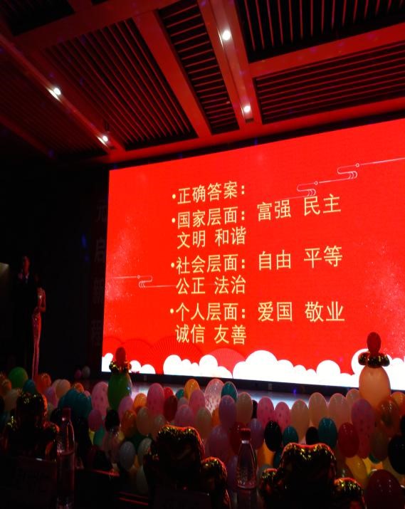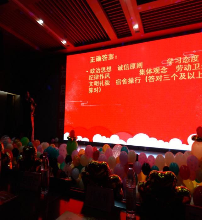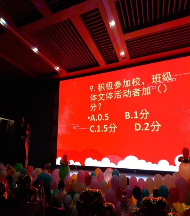 特别是晚会活动中将党的方针政策及学风建设的部分内容通过知识抢答的形式学生快乐地积极参加,非常有意义。这是一场视听盛宴,动听的歌声、美妙的舞蹈、幽默的小品、精彩的话剧、知识抢答等赢来了在场师生的阵阵喝彩。