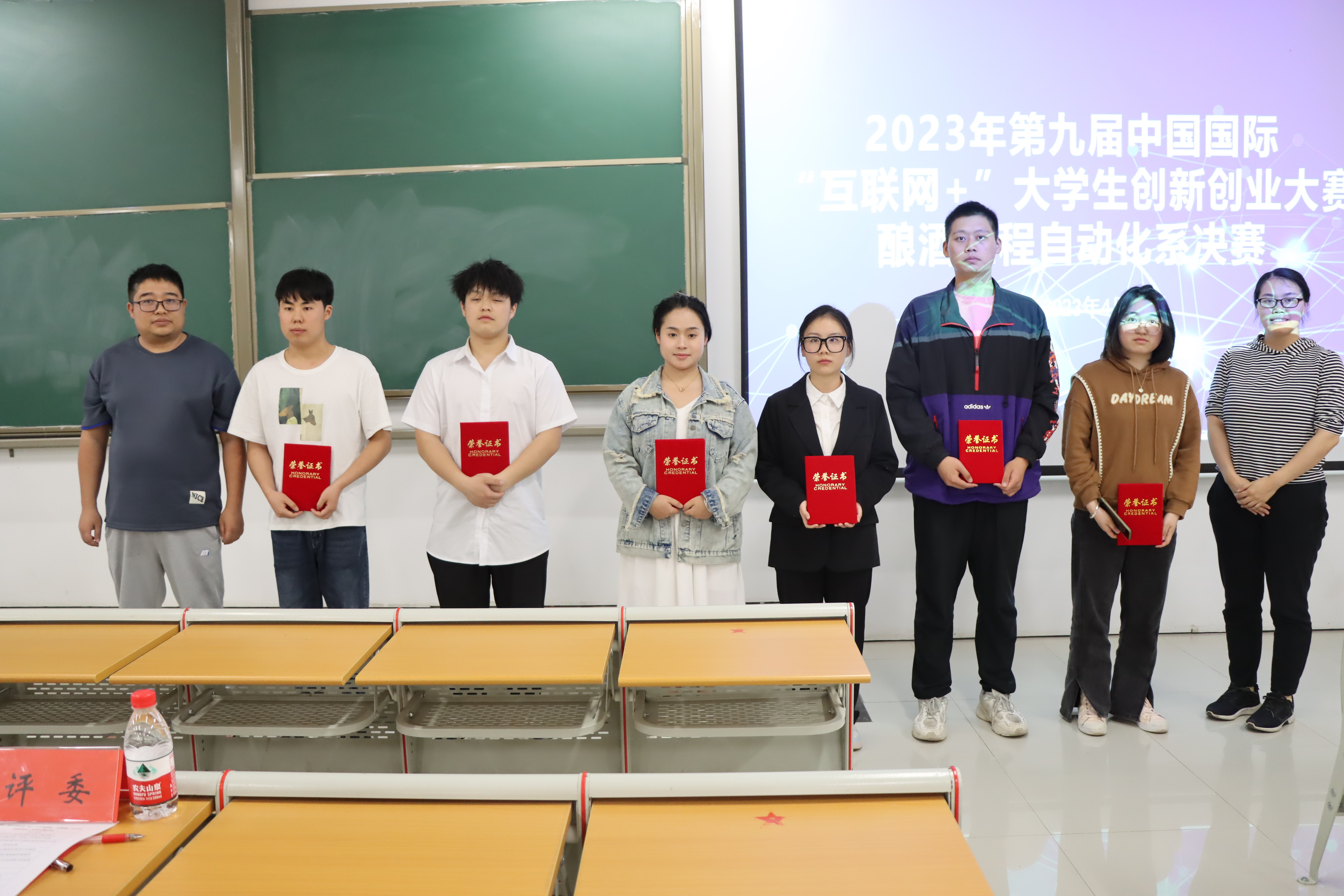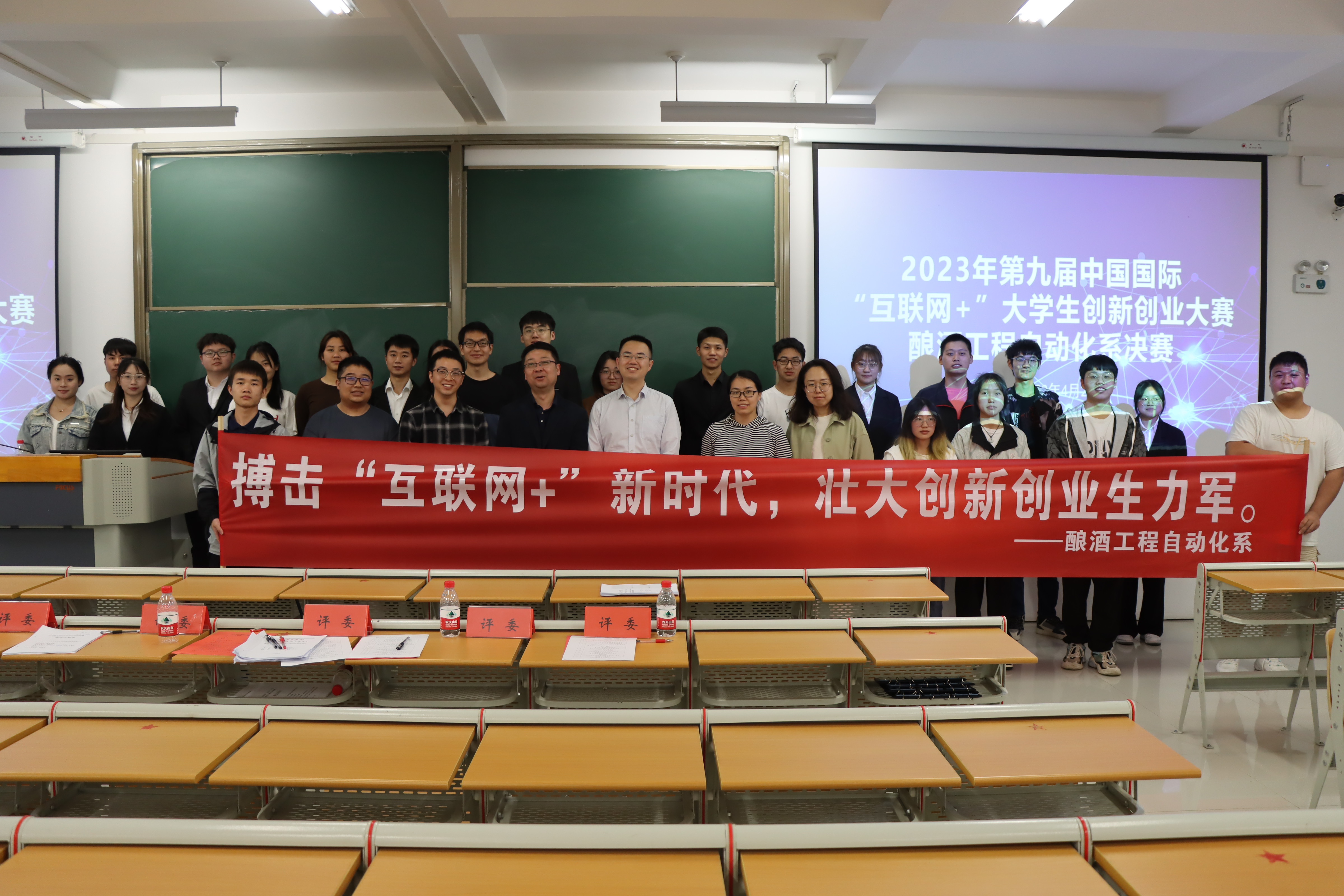 为深入贯彻落实习近平总书记关于教育的重要论述,全面深化高校创新创业教育改革,提升大学生创新创业能力,积极推进学校学生自主学习能力、实践应用能力和创新创业能力培养目标,根据beat365正版唯一官网必一《关于举办第九届中国国际“互联网+”大学生创新创业大赛beat365正版唯一官网必一校赛的通知》要求,酿酒工程自动化系于2023年4月27日在A1-512成功举办第九届“互联网+”大学生创新创业大赛系赛(以下简称“互联网+”系赛)。酿酒工程自动化系主任周克、副主任王陈诚老师、党支部副书记陈照静老师、团总支书记邱旭老师、李东老师、陈秋菊老师、刘璐老师出席本次竞赛活动。
