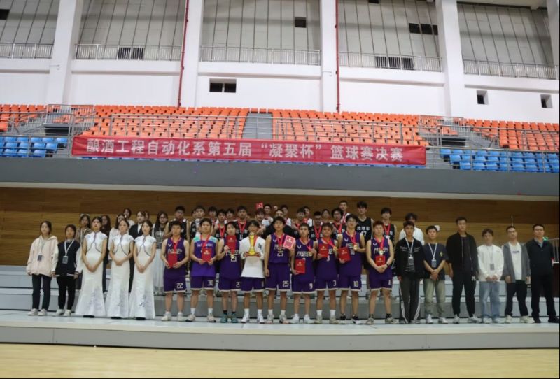 为丰富学生课余生活,营造积极向上、你追我赶的良好氛围。近日,酿酒工程自动化系举办了第五届“凝聚杯”篮球赛并圆满落幕。出席本届“凝聚杯”篮球赛决赛暨闭幕式的有酿酒工程自动化系团总支书记申雄宇,辅导员杨富元、邱旭等老师。