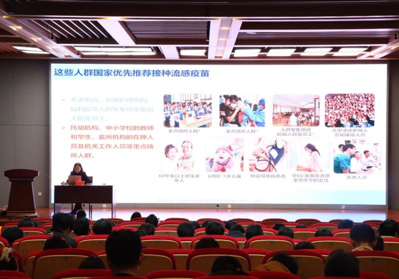 讲座中,陈照玲副院长以“科学防控,精准应对”为主题展开讲解。从传染病的传染源、传播途径、易感染人群以及流感的防控策略等方面进行了详细讲解。