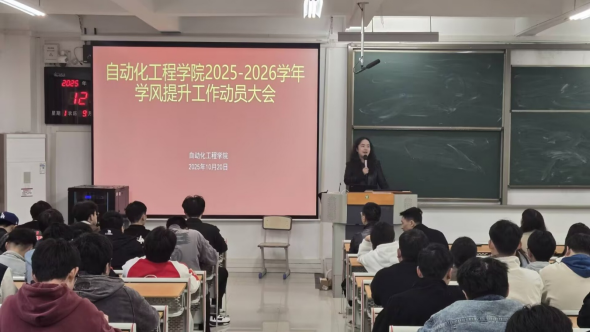 为进一步强化育人阵地建设,营造勤学善思、笃行致远的优良学风。2025年10月20日,自动化工程学院在A1-113教室召开了2025-2026学年学风提升工作动员大会。会议由学院团总支书记申雄宇主持,学院党总支书记欧信忠、副书记肖启霞,学生工作办公室主办骆娜,各班学习委员、学生代表参加,共同为学院学风建设注入新动能。