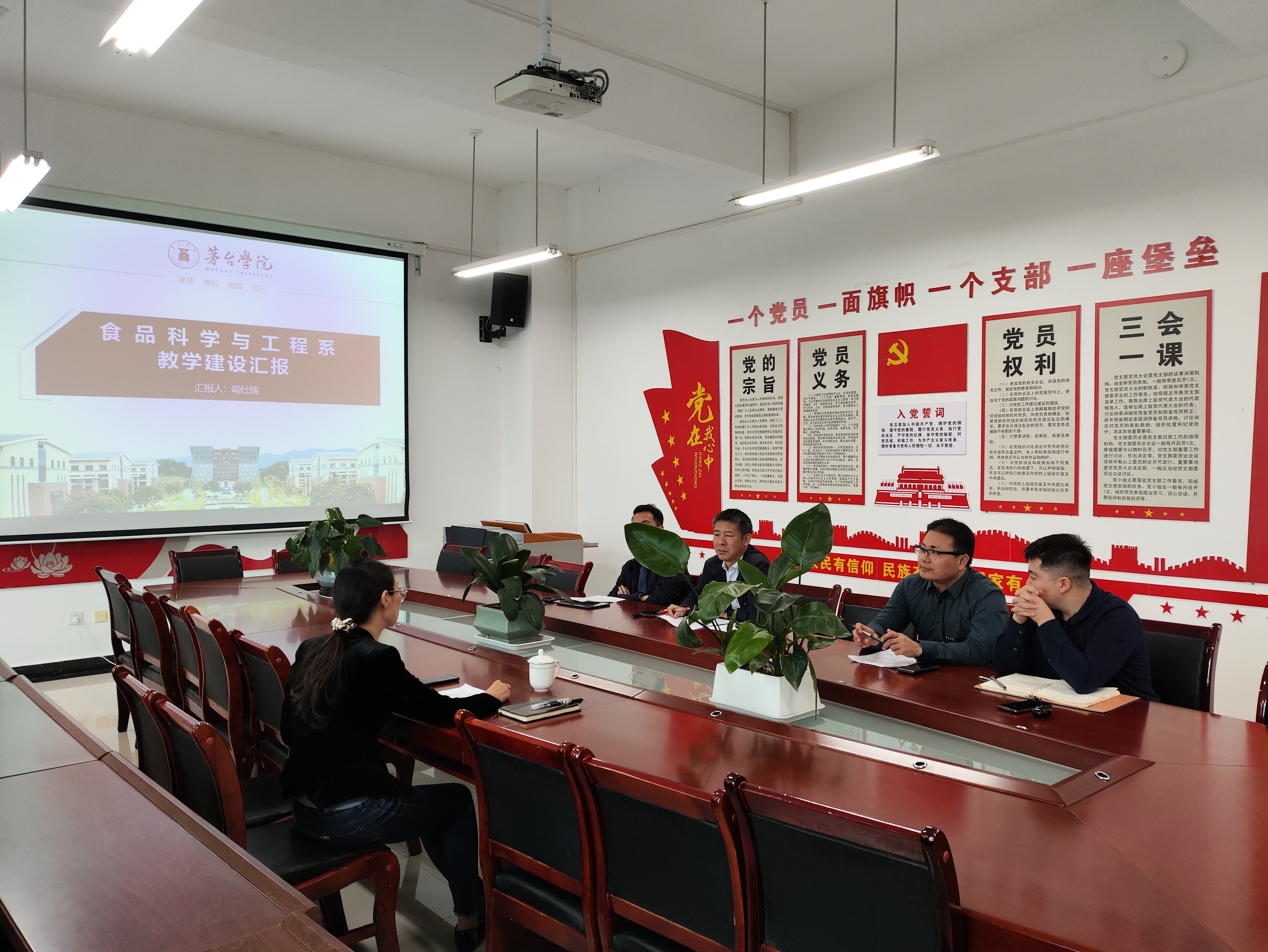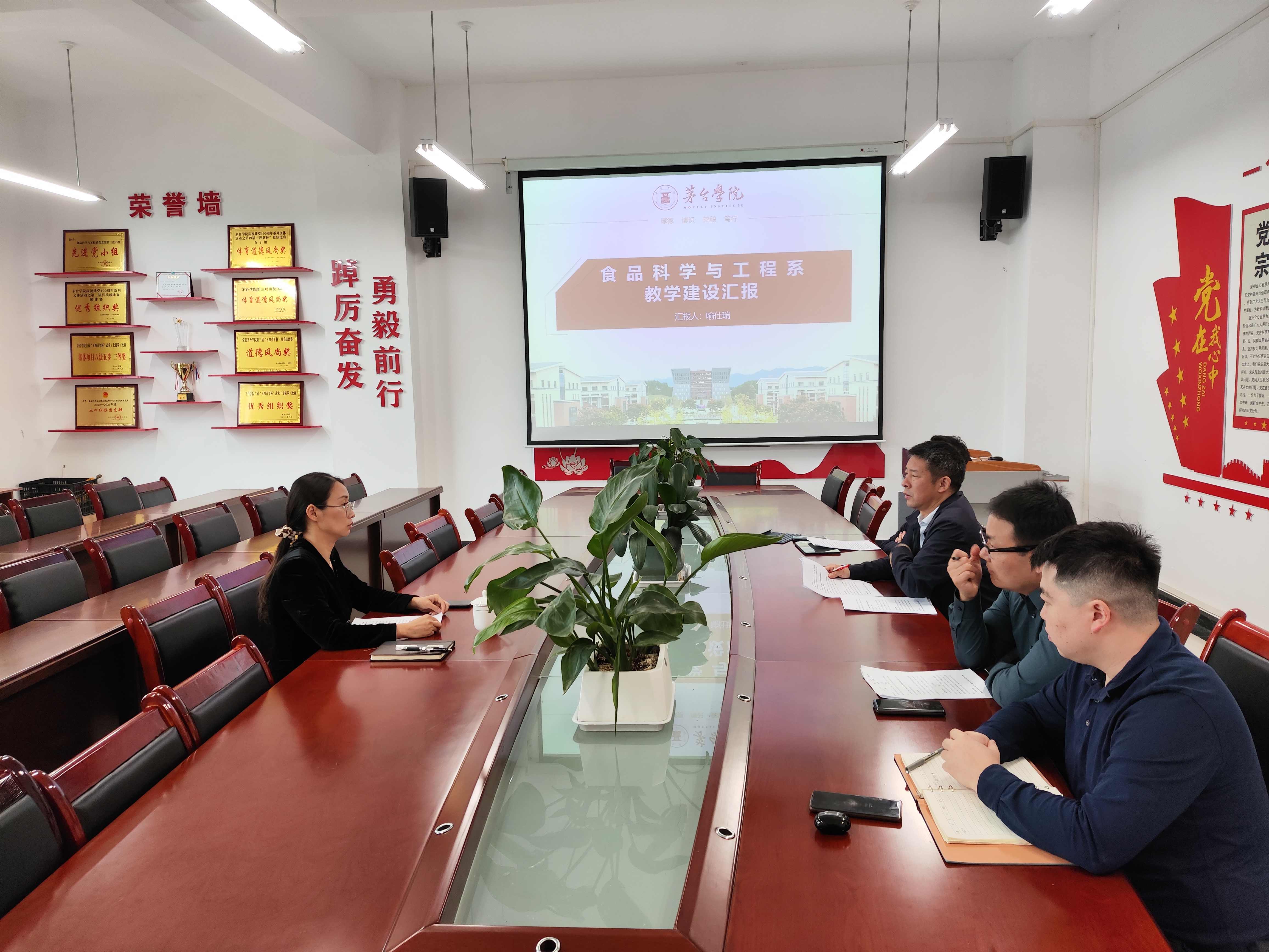 其次,刘旭东就教学巡查、教学要件、课堂管理、教学比赛、教改项目及金课申报等内容进行了汇报;郑华艳科研项目申报、科研成果、协助教学与学生等方面内容进行了汇报;刘秋就学生管理、学生课堂表现、学生活动、学生参加比赛等内容进行了汇报。随后,喻仕瑞就系部党建情况、系部概况、迎评路线、文化宣传、系部特色等内容进行补充说明。