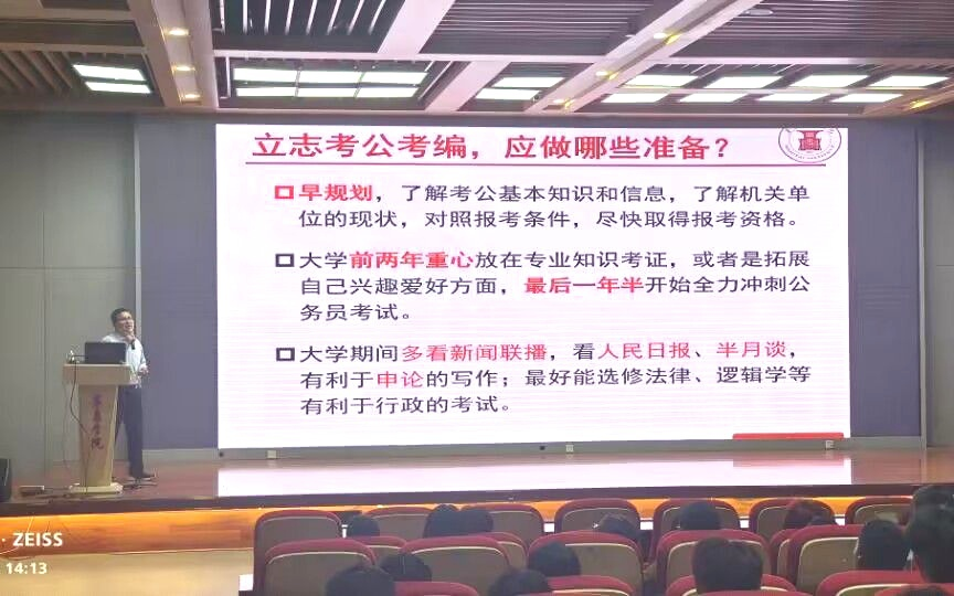 在讲座中,郑老师从考公、考研、考集团以及进入食品行业几个方面进行了精彩分享。通过分析历年相关数据,清晰明了地解读了目前高校学生的择业和就业情况。另外,他也针对性地对考公考研等方面提出了有效建议和技巧。最后,郑老师向全体学生提出了几点要求,既每位学生在校期间都要切实做好规划,积极参与各项实践活动,努力提升学习能力、科研能力及综合能力,进而提升自己的核心竞争力,为毕业和就业尽早做好准备。