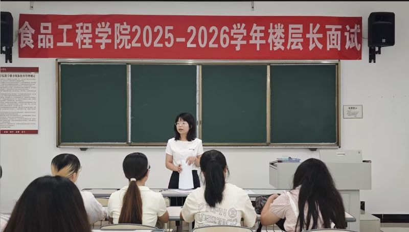 为进一步加强学生宿舍管理,营造文明有序、积极向上的寝室文化氛围,助力学院 “一站式” 学生社区建设,9月19日,食品工程学院在报国楼顺利举办了2025-2026学年楼层长面试选拔活动,众多同学踊跃参与,展现出高度的热情与责任感。学院党总支副书记钟舒、各年级辅导员出席活动。
