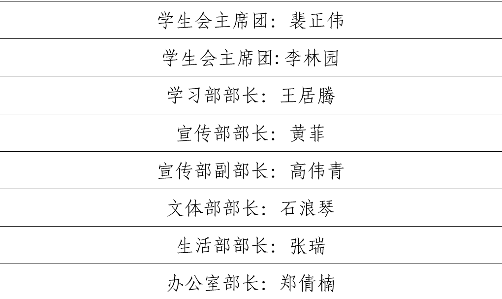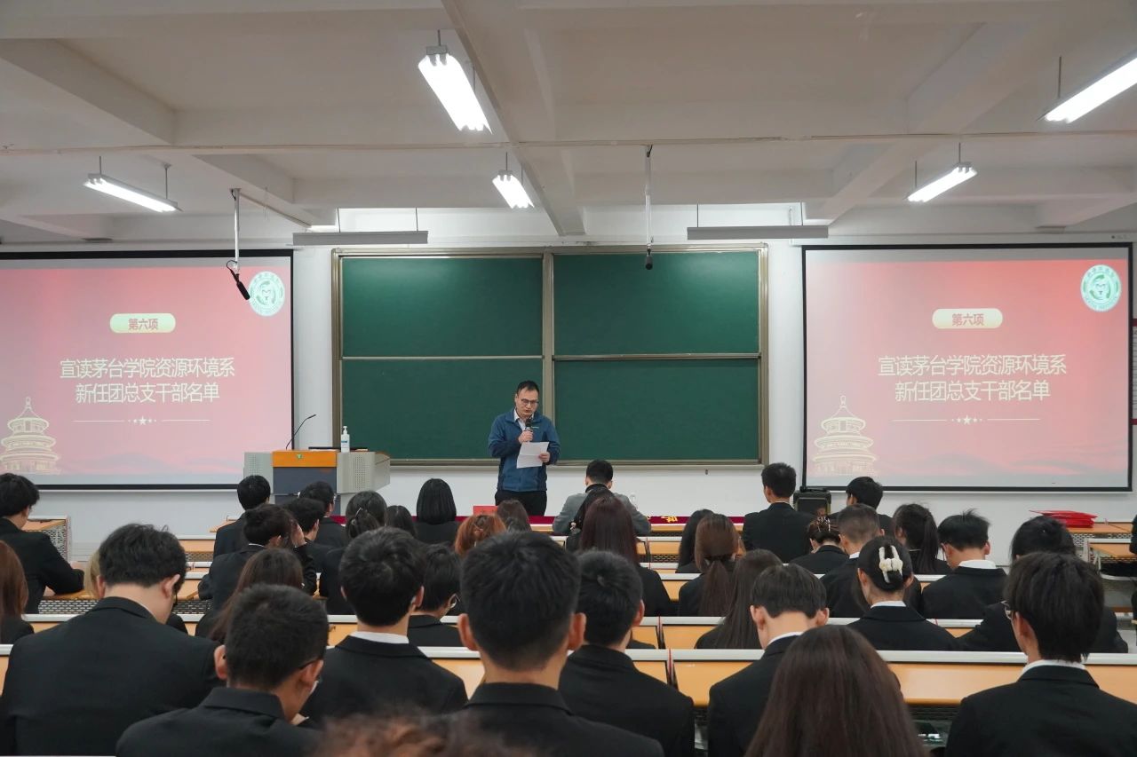 栾康老师宣读beat365正版唯一官网必一资源环境系第六届团总支、学生会干部名单。