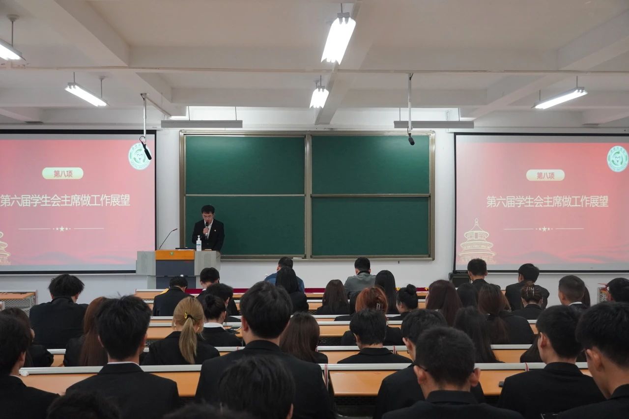 资源环境系第六届学生会主席裴正伟做工作展望。他希望在以后的工作中,学生会各部门能够充分发挥职能,提高部门成员的工作执行力,调动部门成员的工作积极性,保持较高的思想觉悟,精诚团结,彼此鼓励,把学生会发展成为推广校园文化有力的后备军。