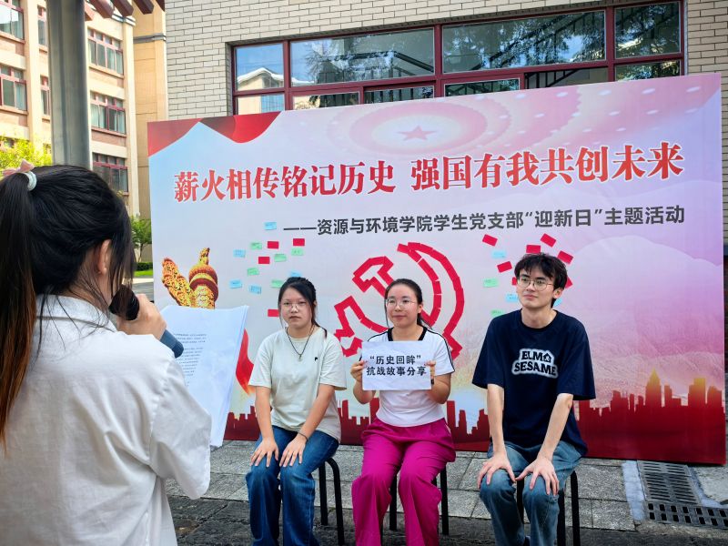 红旗飘飘,光辉闪耀。为纪念中国人民抗日战争暨世界反法西斯战争胜利80周年,引导青年学子铭记光辉历史,激发历史自觉与使命担当,筑牢理想信念根基,推动新生入学教育开好局、起好步,全面增强支部凝聚力和向心力,恰逢新生入学之际,9月3日至9月4日,资源与环境学院学生党支部组织开展“薪火相传铭记历史 强国有我共创未来”迎新日主题党日活动。