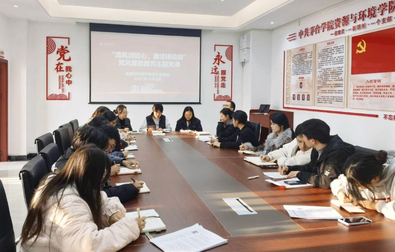 为筑牢青年党员的思想根基,引导青年党员系好人生的“第一粒扣子”,在未来道路上走得正、行得远,2025年12月3日,资源与环境学院学生党支部在A2-519党员活动室组织开展“清风润初心,廉洁铸信仰”党风廉政教育主题党课。