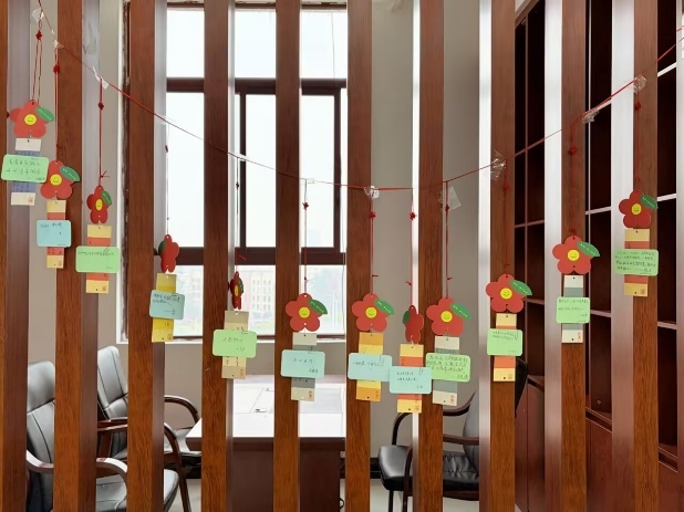 以诺践廉,寄望未来“清风路”。活动室内,笔尖划过卡片沙沙作响,每位党员郑重写下“给未来职场上的自己”的廉洁寄语:“洁心正行”“清清白白做人,干干净净做事”……一张张卡片贴满“寄语墙”,也贴牢了大家“从业先立德”的铮铮誓言。